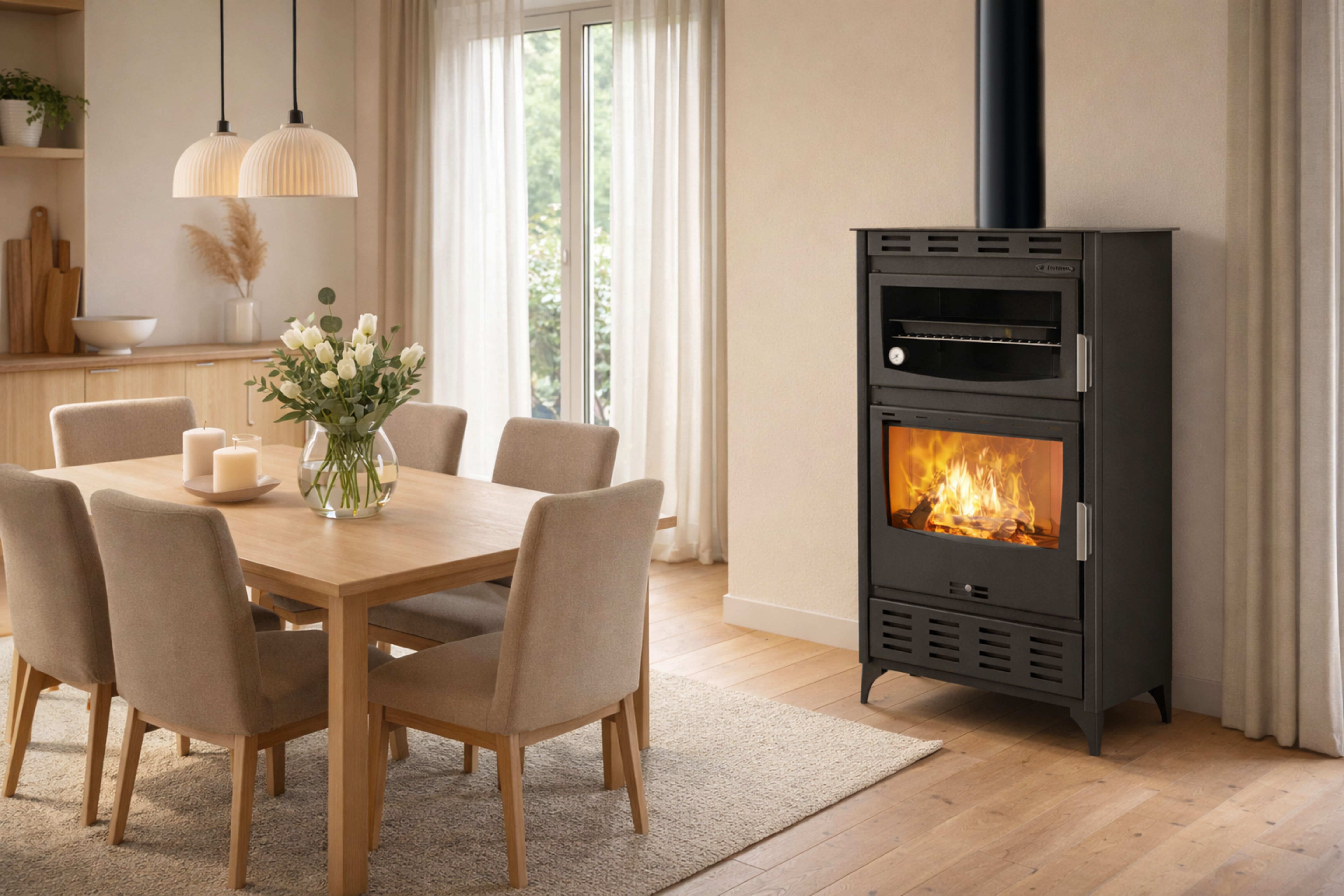 - Miljövänlig uppvärmning – Ved är en förnybar energikälla. Moderna braskaminer med fläkt ger mer fullständig förbränning och lägre utsläpp.
