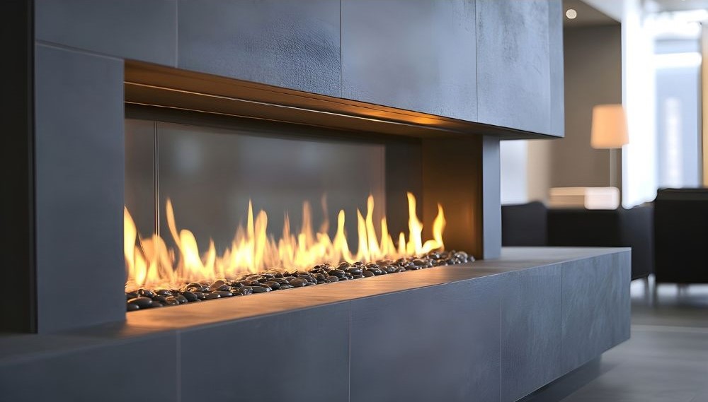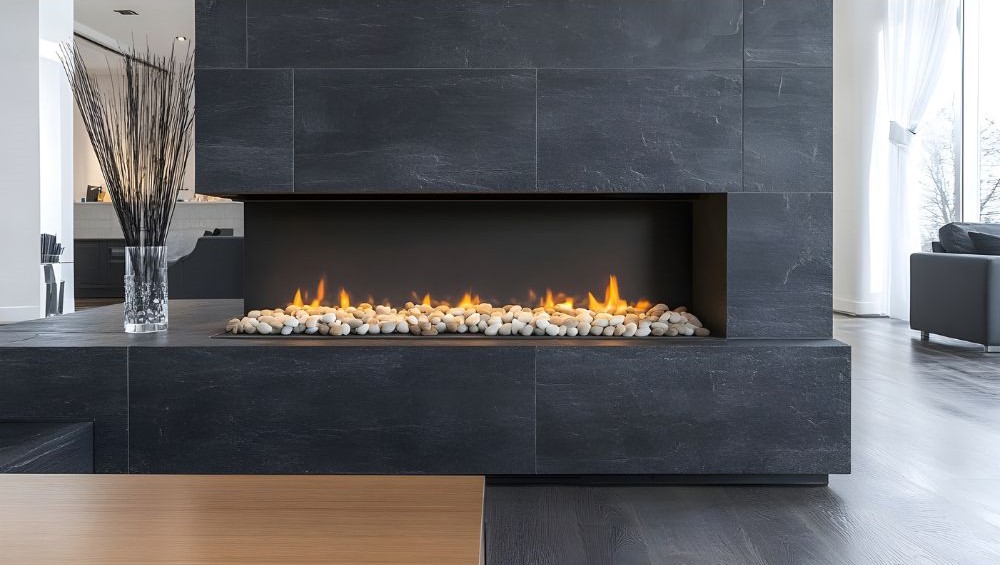 - Realistisk låga och stilren design – moderna gaskaminer har keramiska vedträn eller dekorativa stenar som skapar ett naturligt lågutseende.