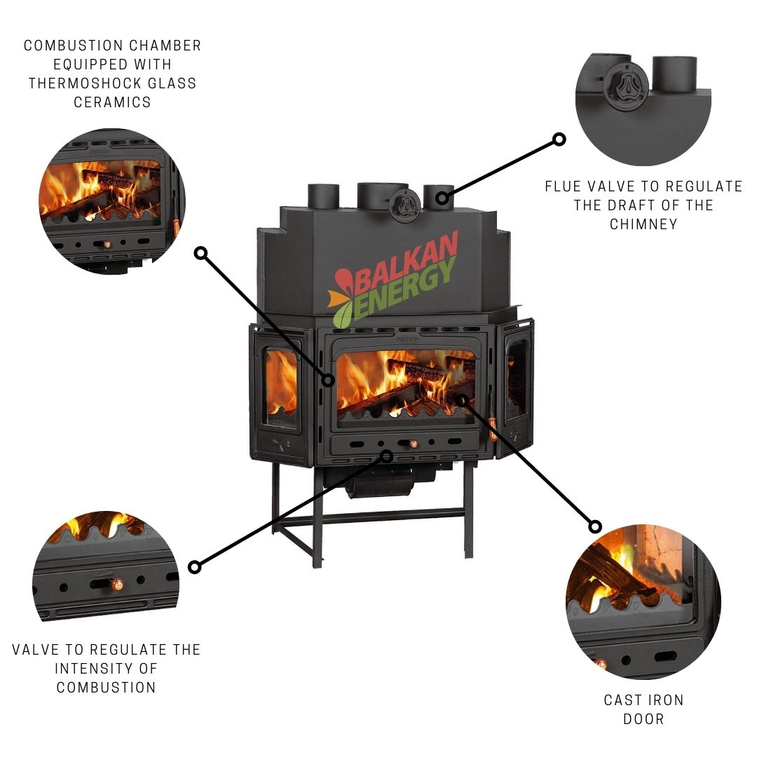 - Förbränningskammaren är utrustad med värmebeständigt keramiskt glas.