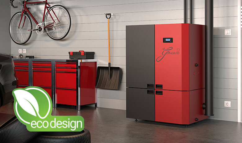 Pelletspanna Alfa Plam Grande, som passar alla miljöer tack vare sin eleganta design. Med en effekt på 28kW är den perfekt för att värma upp utrymmen upp till 280m2 (ungefär).