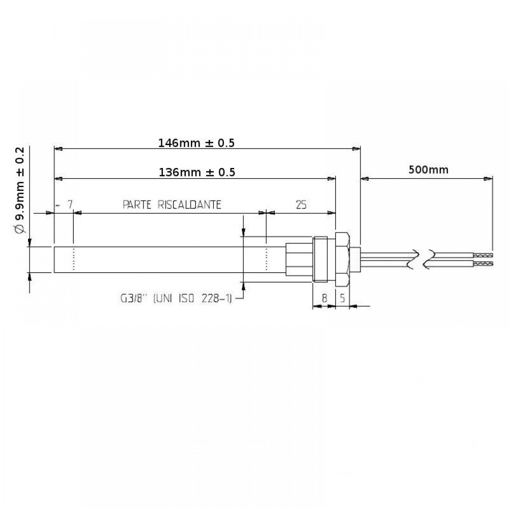 Tändelement i metall för pelletskamin med 3/8" gänganslutning.