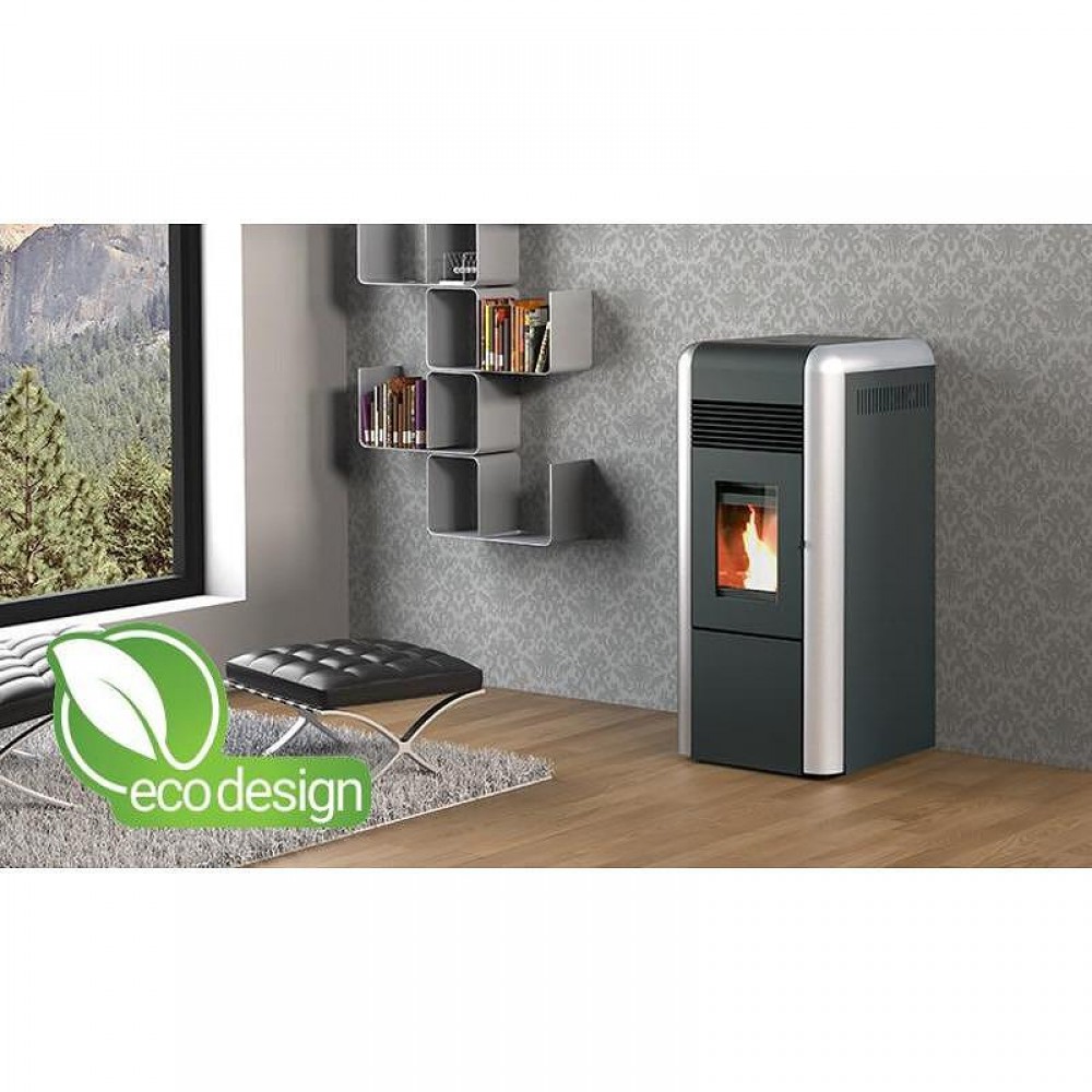 Pelletspannspanna Alfa Plam Dino 17, som passar alla miljöer tack vare sin eleganta design. Med en effekt på 17kW är den perfekt för att värma upp utrymmen upp till 150m 2 (ungefär).